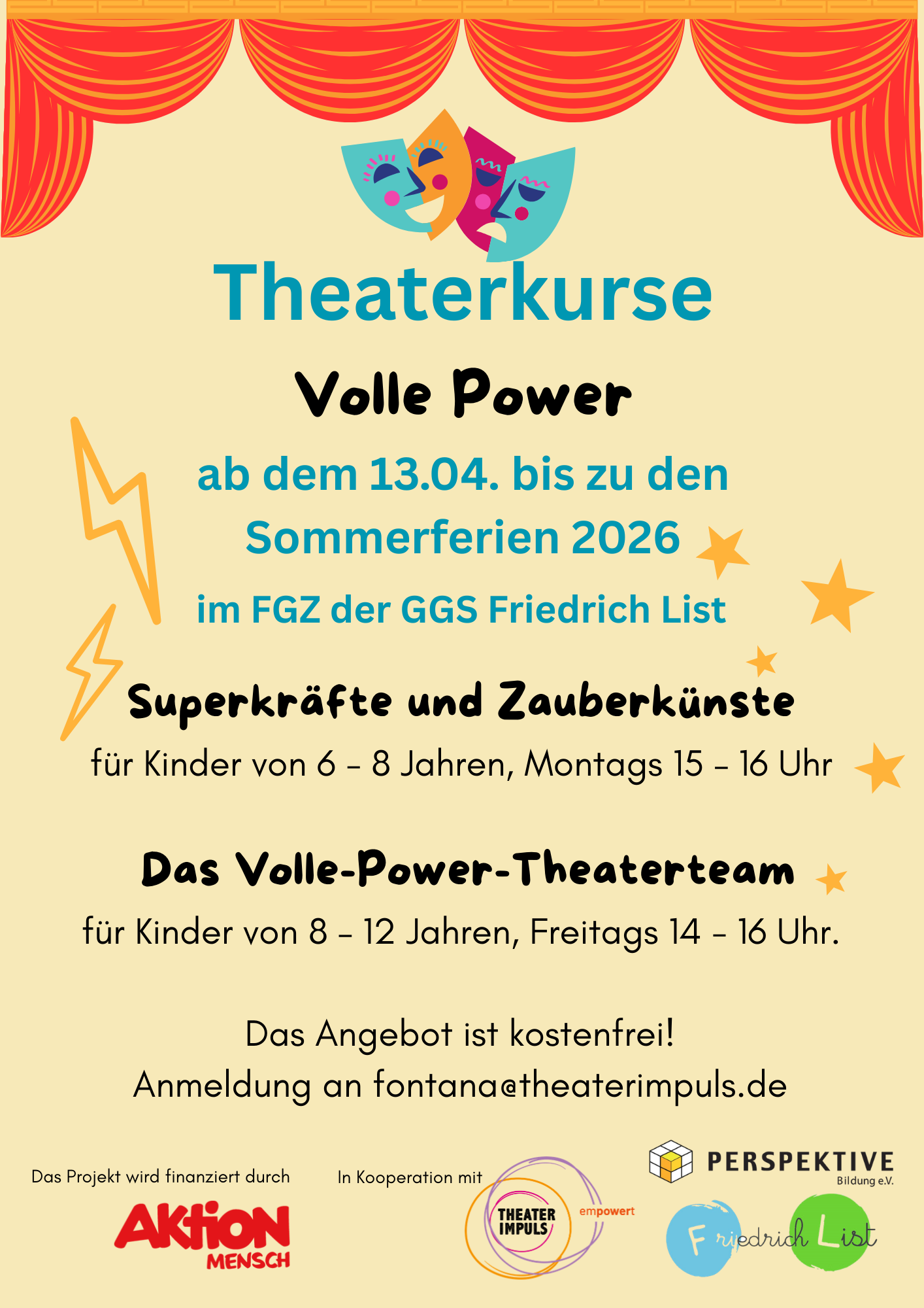 - Theaterkurs „Volle Power“ im FGZ Friedrich-List ab dem 13.04.2026 – Flyer mit weiteren Informationen finden Sie hier